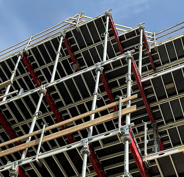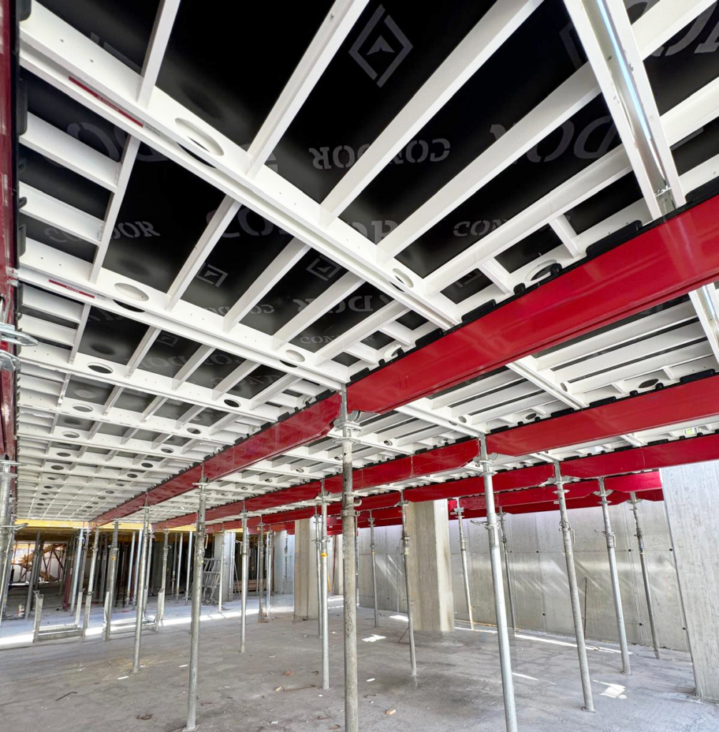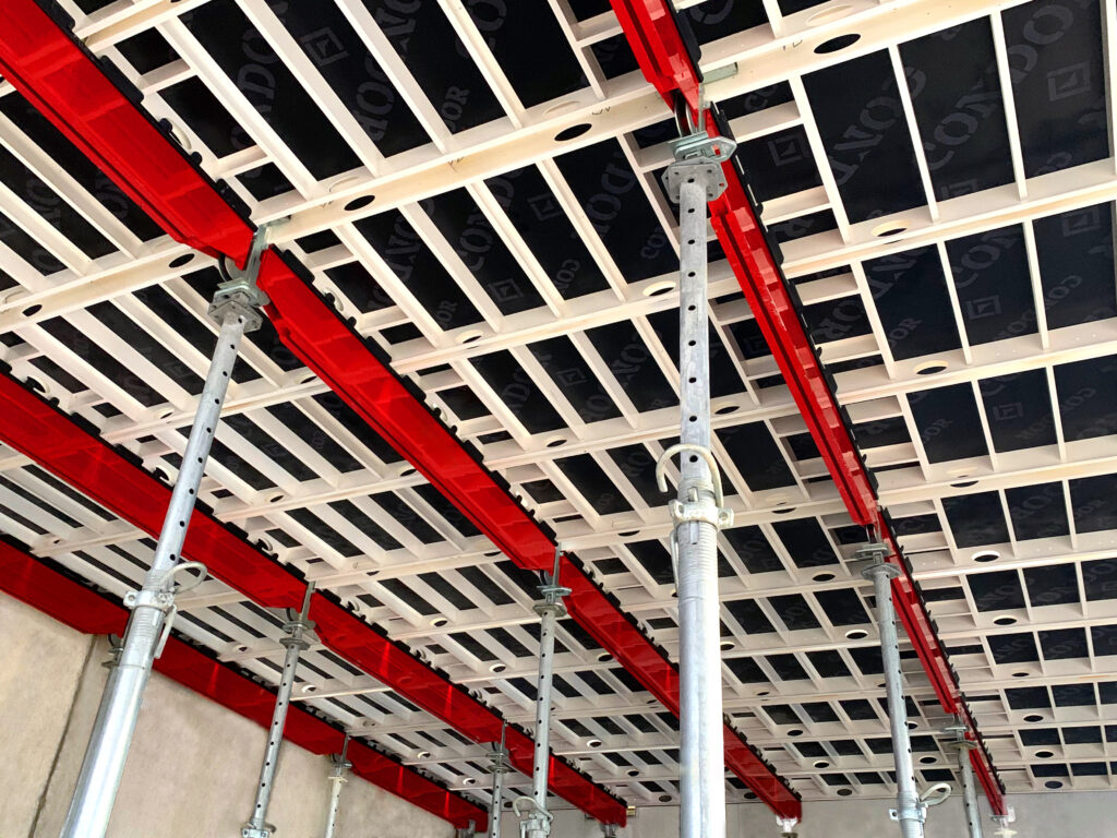Coffrage à cadre en aluminium, modulaire et flexible, idéale pour réduire le temps de mise en oeuvre des dalles coulée sur place.