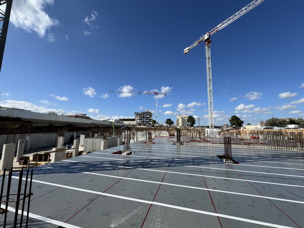 La séquence d’assemblage rationnel et systématique est répétée cycliquement sans variations permettant le montage rapide du système. La phase de décoffrage peut être anticipée par rapport aux 28 jours canoniques grâce à la tête de décoffrage 21365 Aluplus qui permet la récupération des panneaux, tout en laissant les étais en place en fonction d’étais de séchage pour le temps nécessaire. Les panneaux récupérés peuvent être immédiatement réutilisés (par exemple à l’étage supérieur) avec une nouvelle série d’étais, en réduisant ainsi le nombre de composants nécessaires à l’avancement des travaux et le temps requis pour les achever. Le système Aluplus est utilisé pour les bâtiments civils, résidentiels et à plusieurs étages lorsqu’il faut un produit simple, rapide et sûr qui permet le décoffrage anticipé du coffrage pour une realization rapide en succession de dalles coulée sur place.